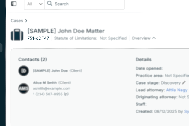 MyCase's fast and modern API enables real-time, lightning-quick searches by client name or case ID.